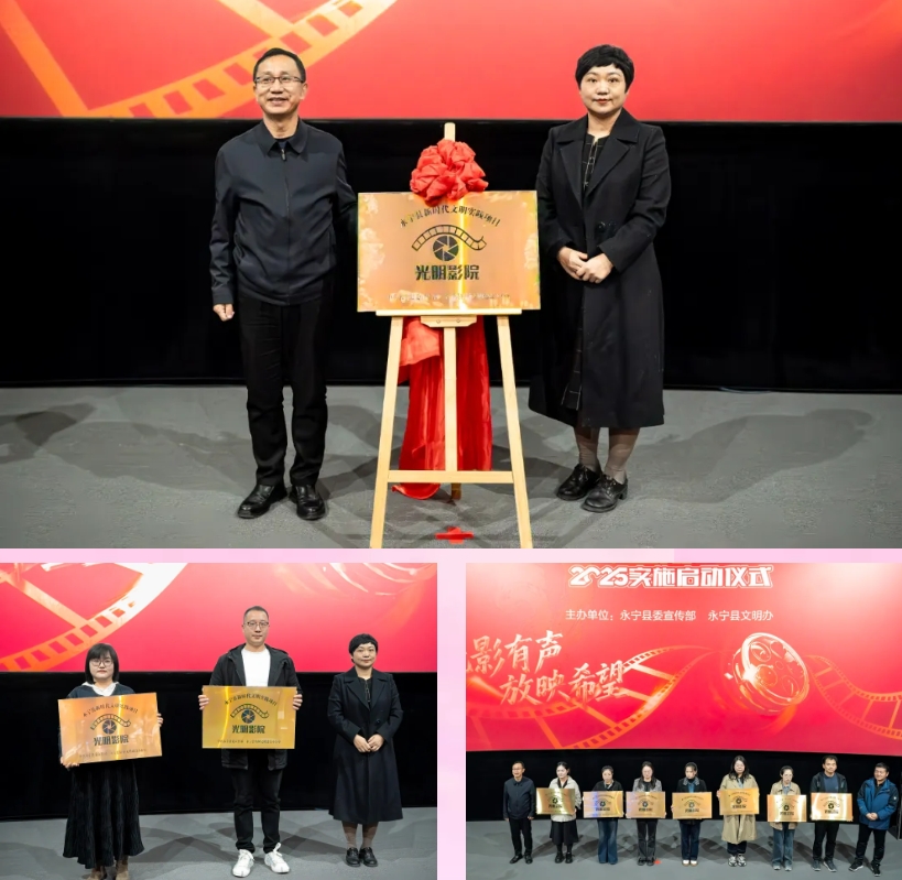 隨著紅綢落下,“光影有聲·放映希望”2025年永寧縣“光明影院”文明實(shí)踐項(xiàng)目正式啟動!“一塊牌匾,就是一份責(zé)任?!?授牌環(huán)節(jié)中,新時(shí)代文明實(shí)踐分中心、鄉(xiāng)鎮(zhèn)實(shí)踐所站、社會影院等9個(gè)點(diǎn)位依次接過牌匾,每一塊牌匾背后,都承載著全縣1010位視障人士共享文化成果的美好愿景。這些點(diǎn)位不僅是放映電影的場所,更是傳遞文明的陣地,優(yōu)質(zhì)的光影服務(wù)更將從這里出發(fā),更精準(zhǔn)、更便捷地觸達(dá)每一位視障群眾。