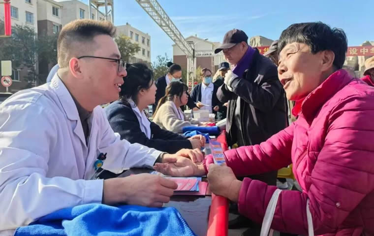 義診服務區(qū)前人氣十足,醫(yī)護志愿者們耐心為居民提供血壓血糖檢測、健康問診、慢性病管理指導等服務,細致分析居民健康狀況、普及日常保健知識,為居民健康保駕護航;農副產品銷售區(qū)熱鬧非凡,米、面、油、手工豆腐等優(yōu)質農產品整齊陳列,新鮮實惠的食材吸引居民紛紛駐足挑選,既打通了農產品流通“最后一公里”,又滿足了居民日常采購需求。