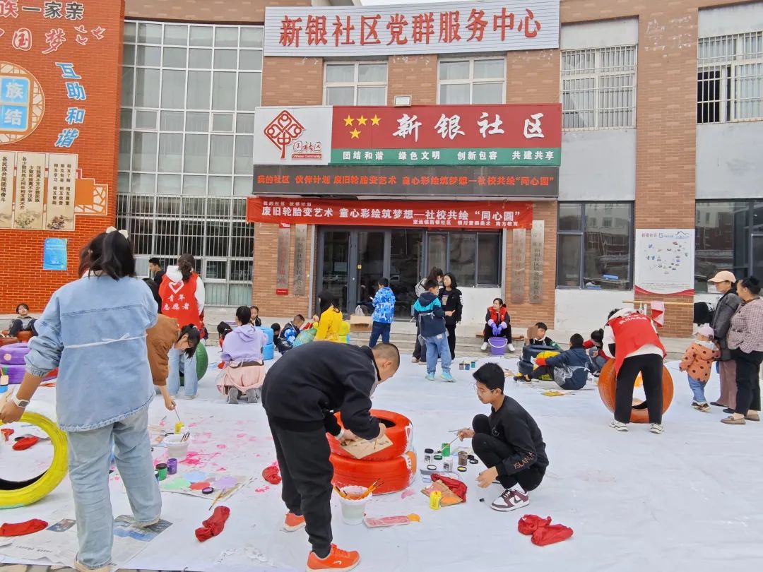 這次彩繪活動,社區(qū)提供了場地和廢舊輪胎等物資支持,南方教育、銀川童畫美術(shù)則組織孩子們參與活動并提供了專業(yè)的指導(dǎo),不僅促進(jìn)了社區(qū)與周邊教育機構(gòu)的合作交流,也為孩子們創(chuàng)造了一個良好的學(xué)習(xí)和創(chuàng)作環(huán)境。