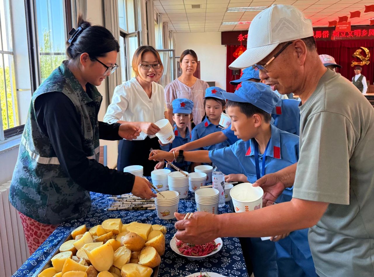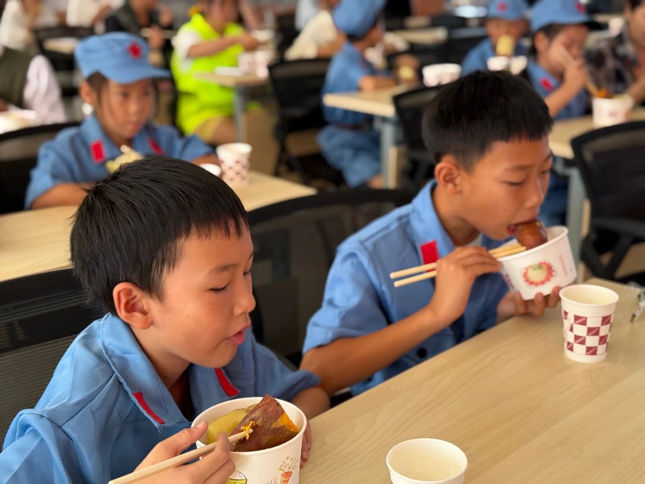 一飯一粥憶初心。福寧社區(qū)準備的“憶苦思甜飯”桌旁,褪去鮮艷色澤的煮土豆、紅薯、玉米,仿佛無聲訴說著革命年代的樸素與艱辛,已然成了最生動的教材。打飯時,老兵為孩子們講述當年“一把炒面一把雪”的行軍故事,讓孩子們在品嘗中懂得“甜”的來之不易?!盃敔?,原來在那么難的時候,能吃上這樣一頓熱乎乎的飯,都是那么難得!”軍娃王怡涵捧著溫熱的土豆輕聲道。這種沉浸式體驗讓“感恩”與“奮進”的種子在孩子們心田中悄然生根發(fā)芽。