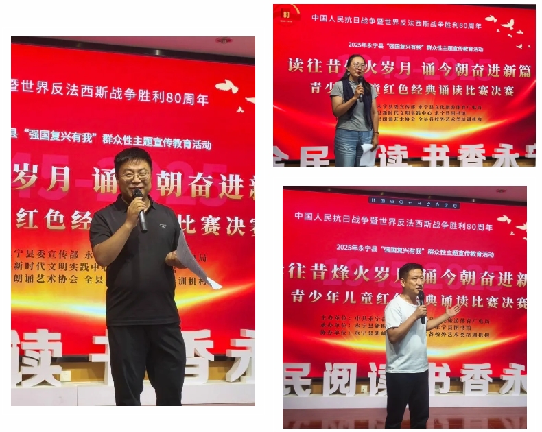 為紀(jì)念中國(guó)人民抗日戰(zhàn)爭(zhēng)暨世界反法西斯戰(zhàn)爭(zhēng)勝利80周年,8月4日,2025年永寧縣“讀往昔烽火歲月 誦今朝奮進(jìn)新篇”青少年兒童紅色經(jīng)典誦讀比賽決賽在新時(shí)代文明實(shí)踐活動(dòng)中心成功舉辦。