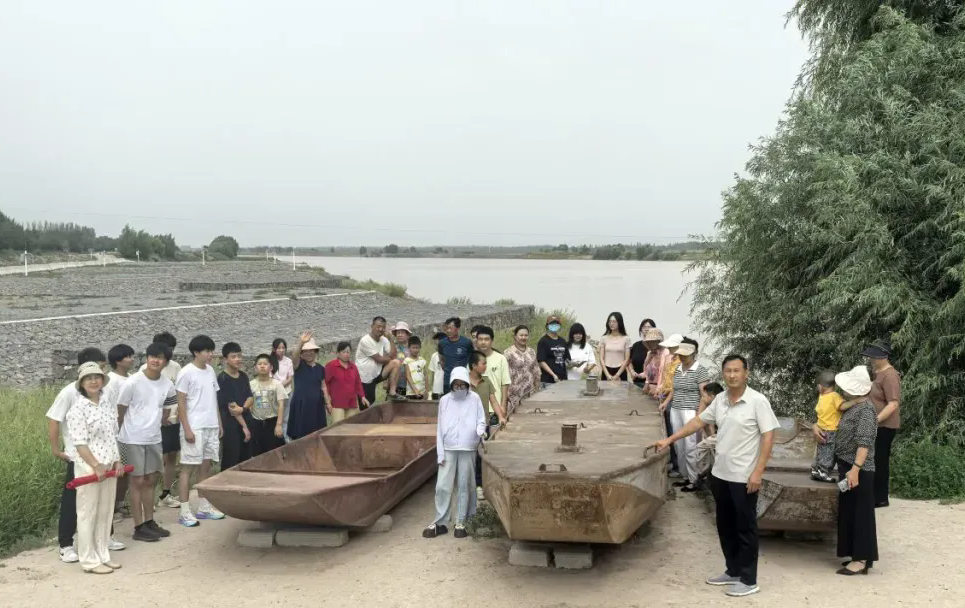 對(duì)話歷史見(jiàn)證,強(qiáng)化情感認(rèn)同。在實(shí)踐環(huán)節(jié)中,孩子們近距離觀摩了陳列于渡口旁的老式渡船。這些船只作為黃河水運(yùn)歷史的生動(dòng)見(jiàn)證,雖已斑駁褪色,但船身留下的歲月的痕跡、船頭的鉚釘、船艙的結(jié)構(gòu),依然清晰傳遞出當(dāng)年軍民同心、晝夜不息擺渡支援解放大軍的壯闊圖景。孩子們輕輕觸摸船體,仿佛穿越時(shí)空,真切感受到那段風(fēng)雨同舟、共克時(shí)艱的磅礴力量。